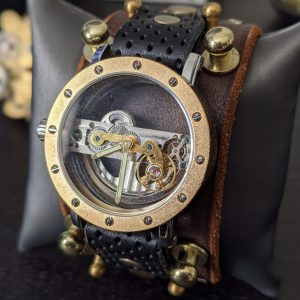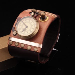 – Unique / one of a kind steampunk wristwatch leather cuff, hand made