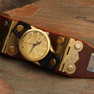 Steampunk watch , One of a kind, genuine leather, hand made in the USA. Quality battery watch included. Comfortable and cushioned inside. Perfect for any steampunk enthusiast or …