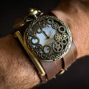 – Unique, one of a kind steampunk wristwatch leather cuff