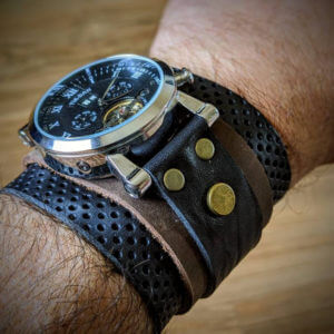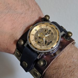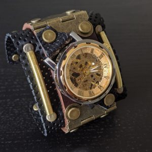 – Unique / one of a kind steampunk wristwatch leather cuff