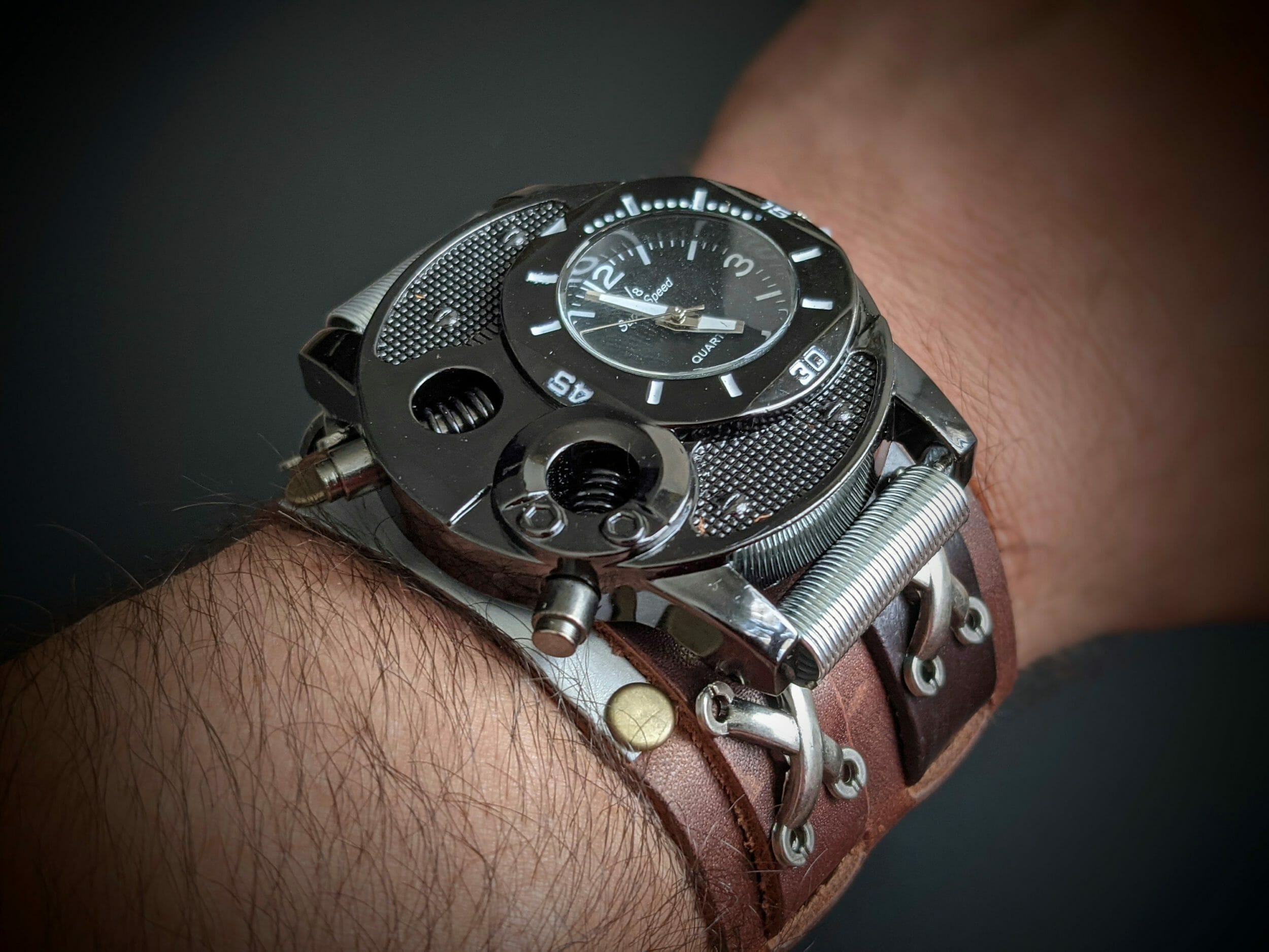 Steampunk wrist watch, Steampunk wristband, Steampunk bracelet, Leather bracelet, Leather wristband, Steampunk cuff, Steampunk cosplay, Cyberpunk Diesel Punk wristwatch